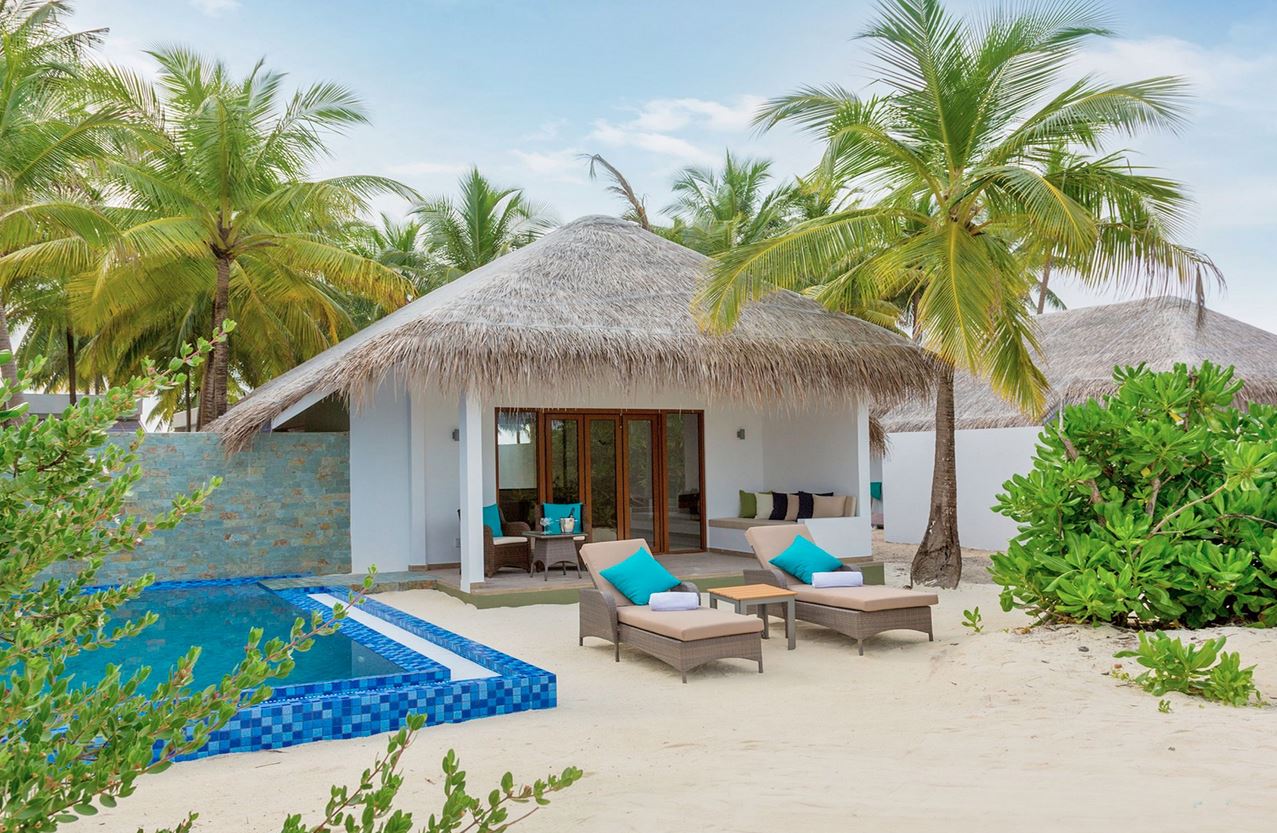 Cocoon Presidental Suite (300кв.м.) — Президентский люкс является самым раскошенным, комфортным и крупнейшим номером на острове. В номере: огромная гостиная, две прекрасно оборудованные спальни, столовая на открытом воздухе и частный бассейн. Его потрясающие расположение на побережье открывает прекрасный вид на лагуну.
