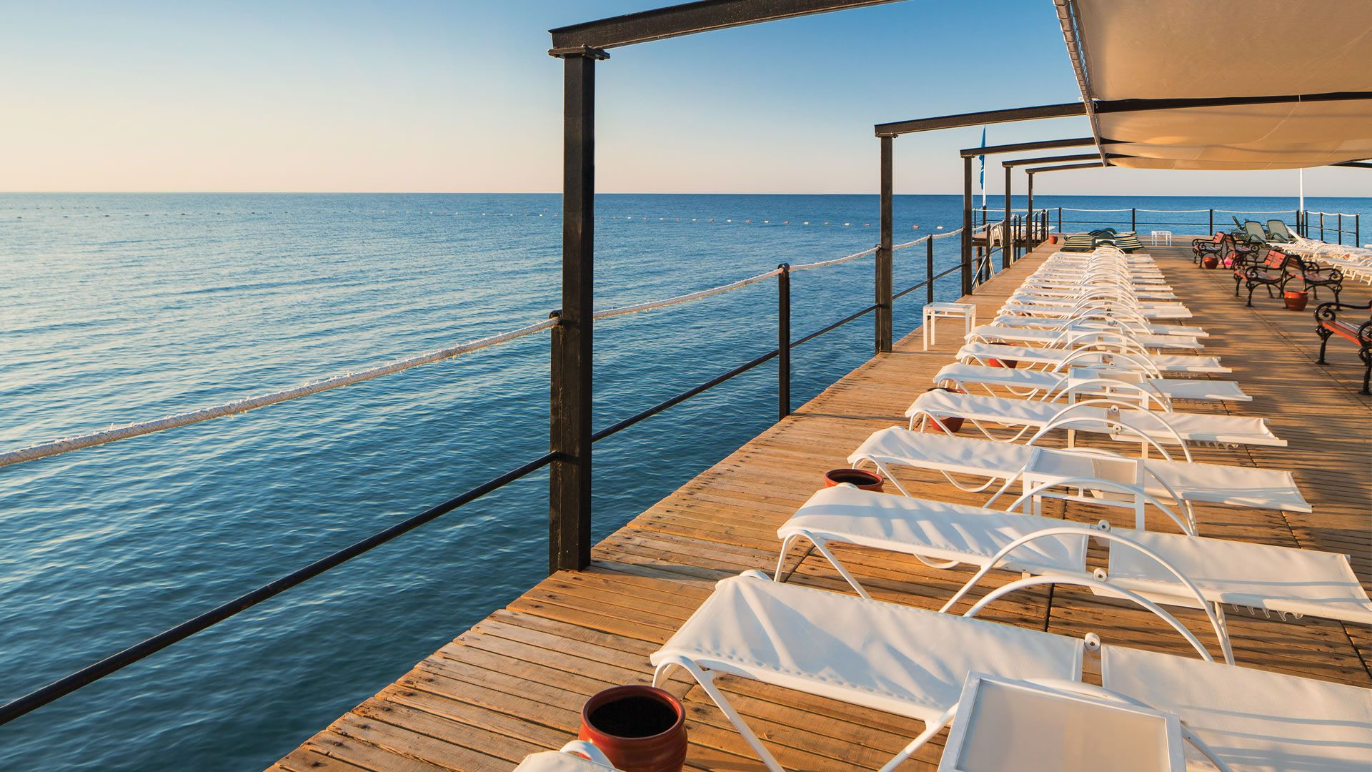 Пирс, понтон: Есть. 1 деревянный пирс. Территория пляжа: Собственный песчаный пляж. Длина: 118 м Вход в море: Песок. |