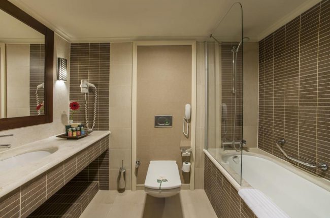 2 двухуровневых premier suite (vip-сервис, все с видом на море, на первом уровне: гостиная с мягкой мебелью, спальня с дверью, ванная с ванной и WC, балкон; на втором уровне: спальня с дверью c french bed, ванная с джакузи, джакузи на террасе, макс. 4 чел., 189–233 м2). Vip-сервис для premier suite: индивидуальная регистрация на ресепшн, room service 24 часа – бесплатно, резервация во всех ресторанах a la carte – бесплатно (кроме японского), отдельный зал в главном ресторане, услуги прачечной и химчистки, корзина с фруктами и цветы в номер – в день заезда, ежедневная доставка газет в номер, приготовление номера ко сну (turn-down сервис).